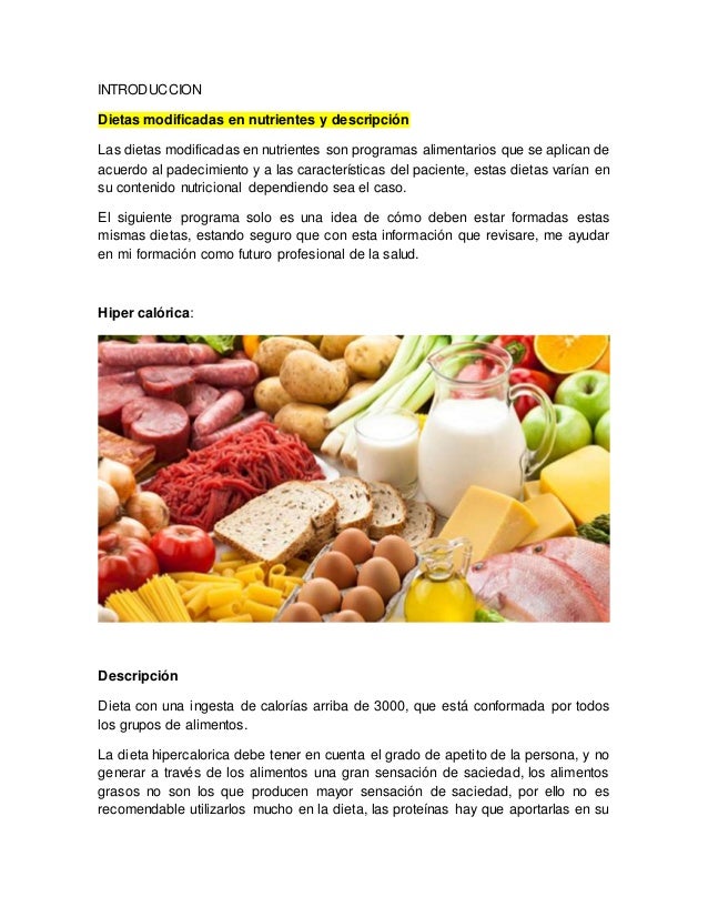 Dietas modificadas en contenido de fibra. La dietas modificadas en contenido de nutrimentos se prescriben con el objetivo de ayudar a la curación de enfermedades yo disminuir algún malestar que afectan a los pacientes por lo que es necesario siempre la atención individualizada del paciente con el fin de adecuar la dieta al estado de salud del mismo con respecto a los. La dietética es la disciplina que relaciona los alimentos con las necesidades nutricionales.