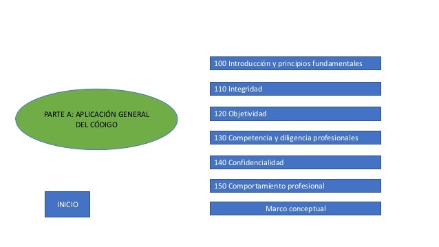 APLICACIÓN GENERAL DEL CODIGO SECCION 100 Introducción y principios fundamentales 1001 1003 Principios fundamentales 1004 Enfoque del marco de referencia conceptual 1005 1009. Ser objetivos e imparciales cuando se va a tomar decisiones y. Integridad Objetividad e Independencia.