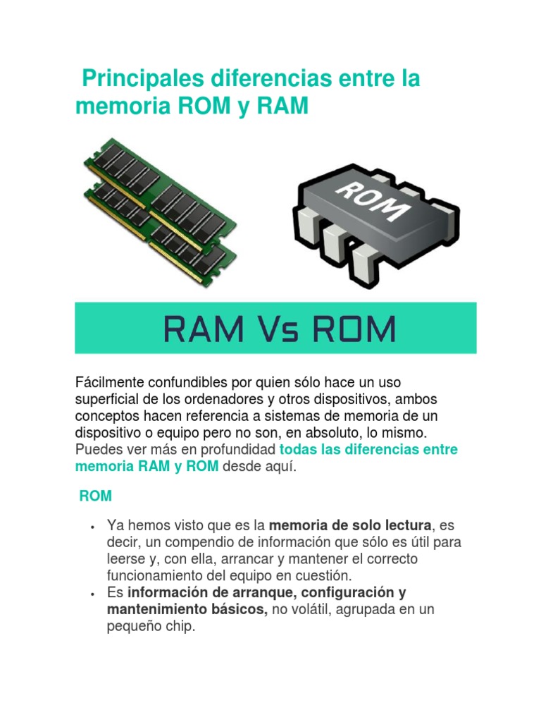 Principales Diferencias Entre La Memoria Rom Y Ram Pdf