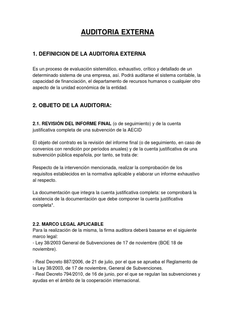 El informe del auditor tiene que estar basado en la documentación o papeles de trabajo. Reyes Guzmán 9 INFORME DE AUDITORÍA MÉDICA La auditoría. Los contratos o equivalentes que afectan al.